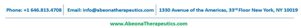 Congratulations once again on your retirement. I want to thank you for your years of service and many contributions. This letter of agreement outlines the terms of your separation from employment with Abeona Therapeutics Inc. (the “Company”), which will be further agreed to in a definitive separation agreement containing all the terms and conditions of your separation (“Separation Agreement”). You and the Company agree as follows: