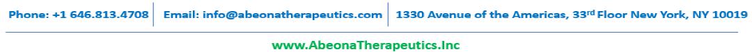 Abeona Therapeutics Inc. c/o Chief Executive Officer 1330 Avenue of the Americas, 33rd Floor New York, NY 10019 Email: legalnotice@abeonatherapeutics.com |