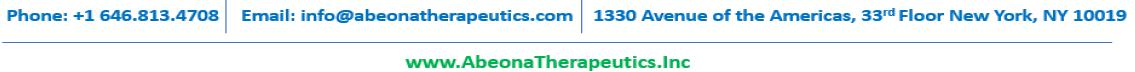 Abeona Therapeutics Inc. c/o Chief Executive Officer 1330 Avenue of the Americas, 33rd Floor New York, NY 10019 Email: legalnotice@abeonatherapeutics.com |