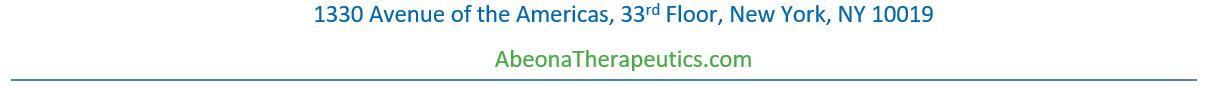 Abeona Therapeutics Inc. c/o Chief Executive Officer 1330 Avenue of the Americas, 33rd Floor New York, NY 10019 Email: legalnotice@abeonatherapeutics.com |